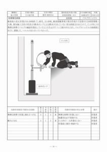 こうした状況を鑑み、建築設備業の現場の労働災害を防止するためのツールとして、現場のKYや作業手順書作成に有効に活用できるものとして、実際の災害事例をもとに「リスクアセスメント」を実施しやすい様に《イラスト》を取り込み、ワンシートにまとめた『すぐつかえるリスクアセスメントのための災害事例集2015年版(CD-ROM付)』を出版いたしました。